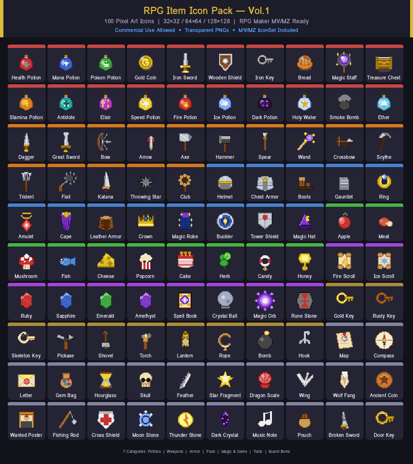 A complete pixel art icon pack for RPG Maker MV and MZ developers.